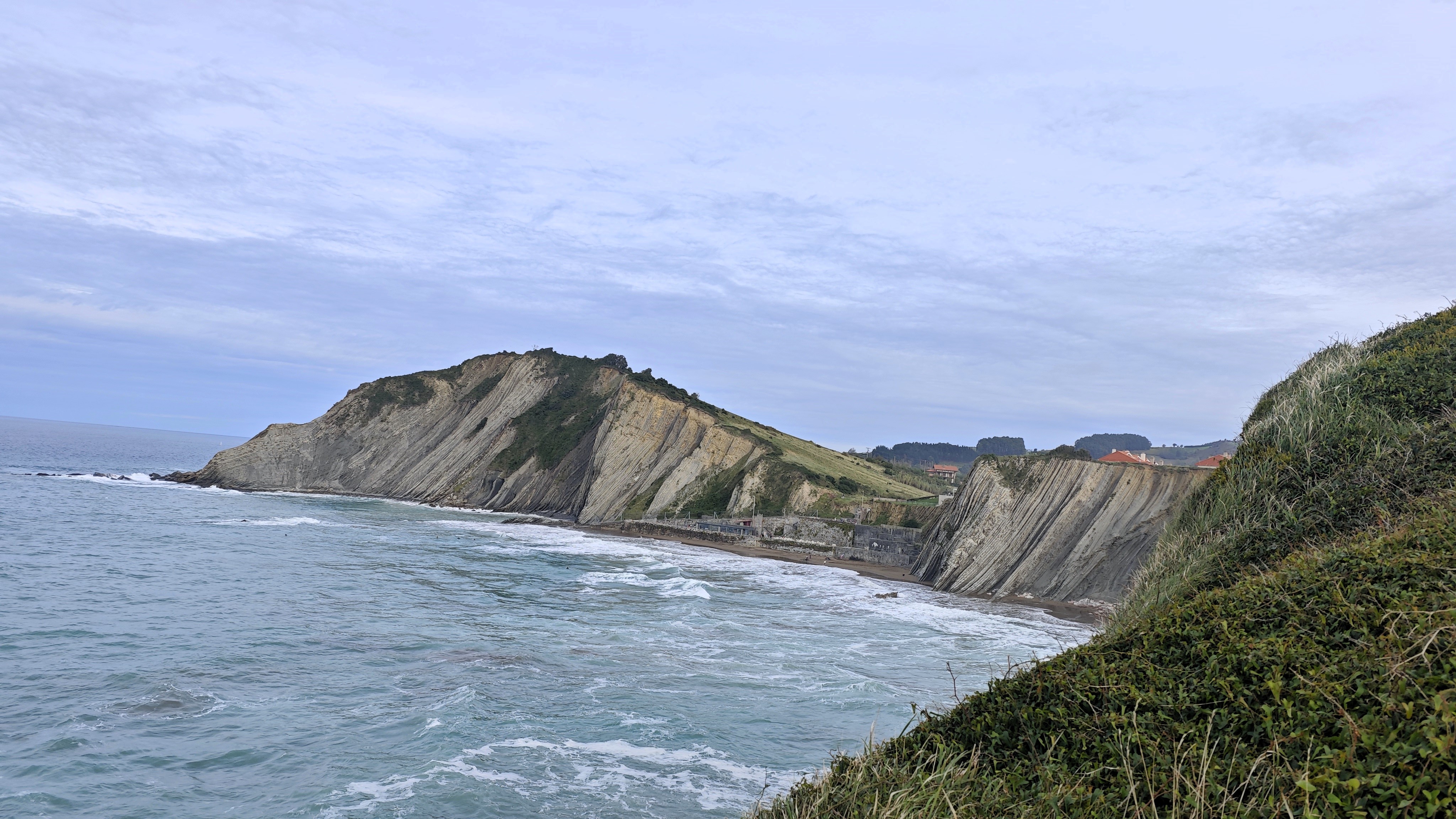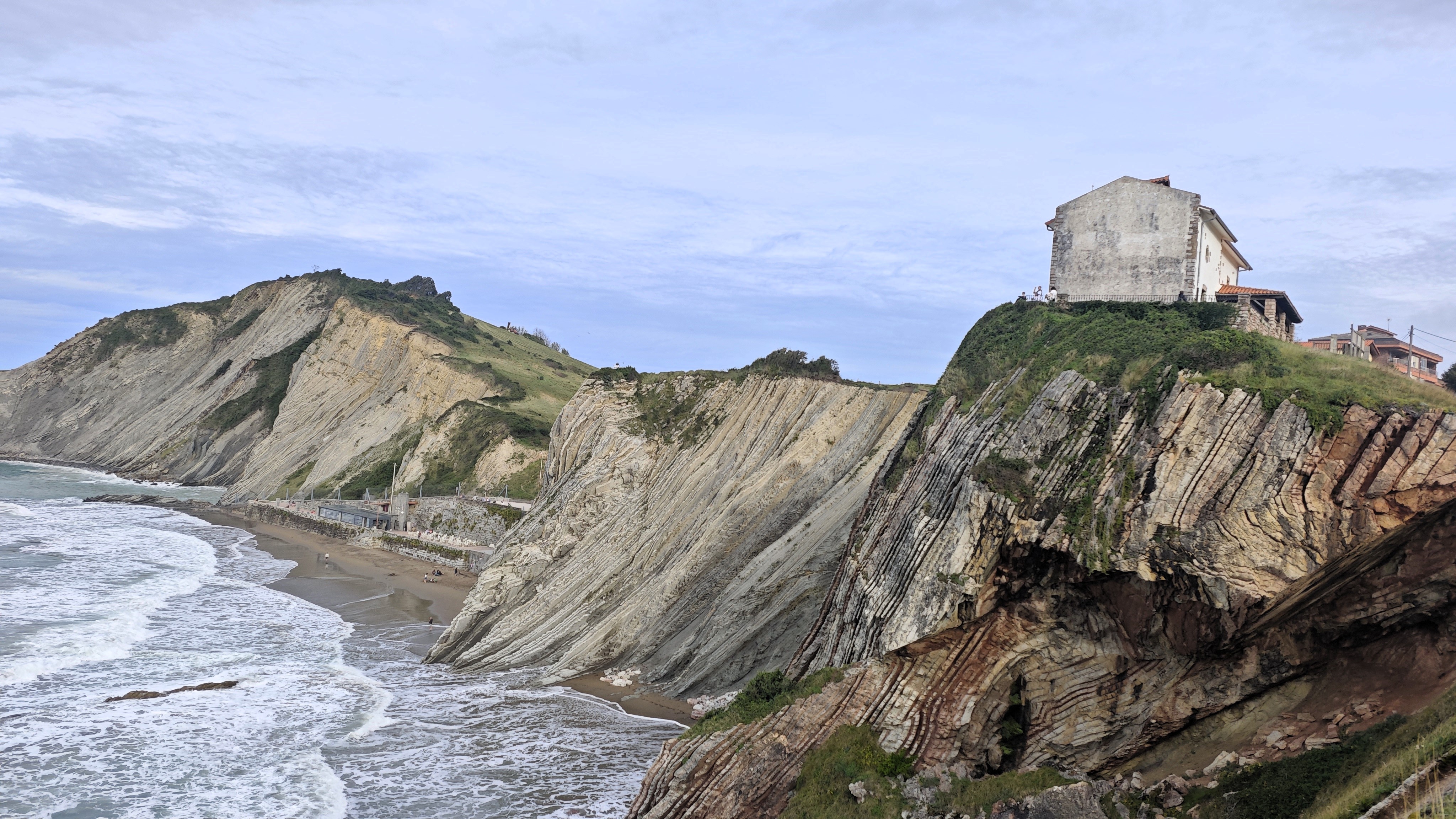 Los flysch de Zumaya son unas formaciones rocosas que forman parte de los acantilados de la costa vasca y que se produjeron por decantación de sedimentos y pequeñas conchas🐚 de organismos marinos en el fondo de un mar profundo🌊 que dividía la península ibérica y el continente europeo.